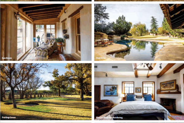 This historic Spanish-style Hacienda spans approximately 8,000 sq ft, featuring luxurious architectural details, 3 bedrooms, 3 full bathrooms, 2 powder rooms, a dramatic two-story master suite, handcrafted finishes, and 11 fireplaces across multiple buildings. The estate includes a carriage house, caretaker’s home, guest/staff apartment, event center, stables and riding arena, RV garage, fitness center, and a resort-style pool with lush lawns and mature trees.